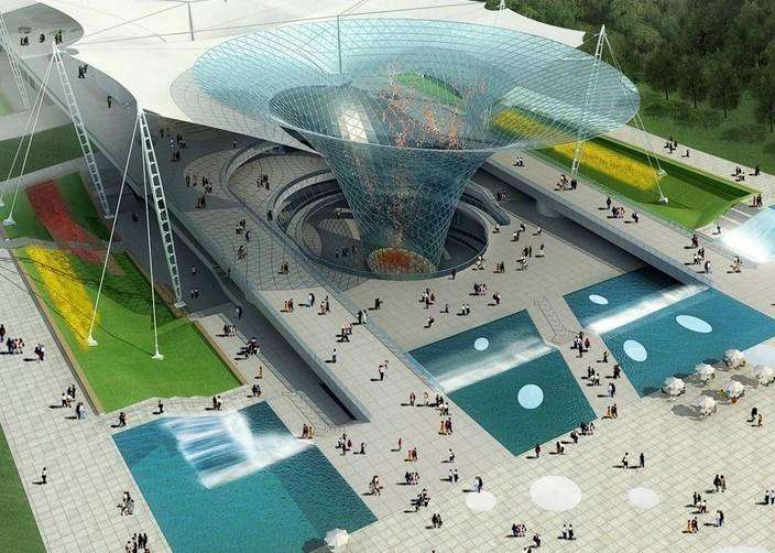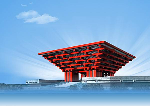 2010年上海世博会中国国家馆,以城市发展中的中华智慧为主题,表现出了“东方之冠,鼎盛中华,天下粮仓,富庶百姓”的中国文化精神与气质。中国馆融合了中国古代营造法则和现代设计理念,诠释了东方“天人合一,和谐共生”的哲学思想,展现了艺术之美、力度之美、传统之美和现代之美,是对中国文化的表达。
