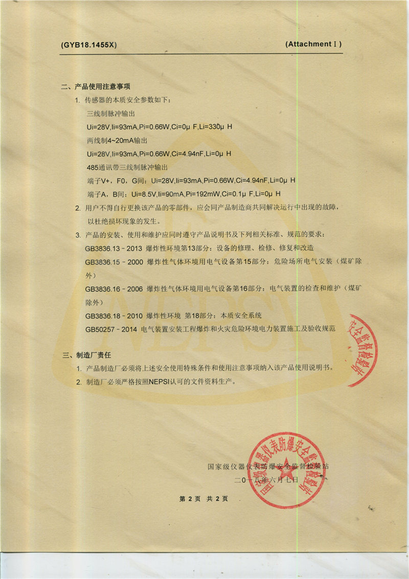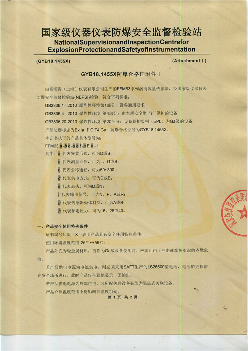 涡街防爆证