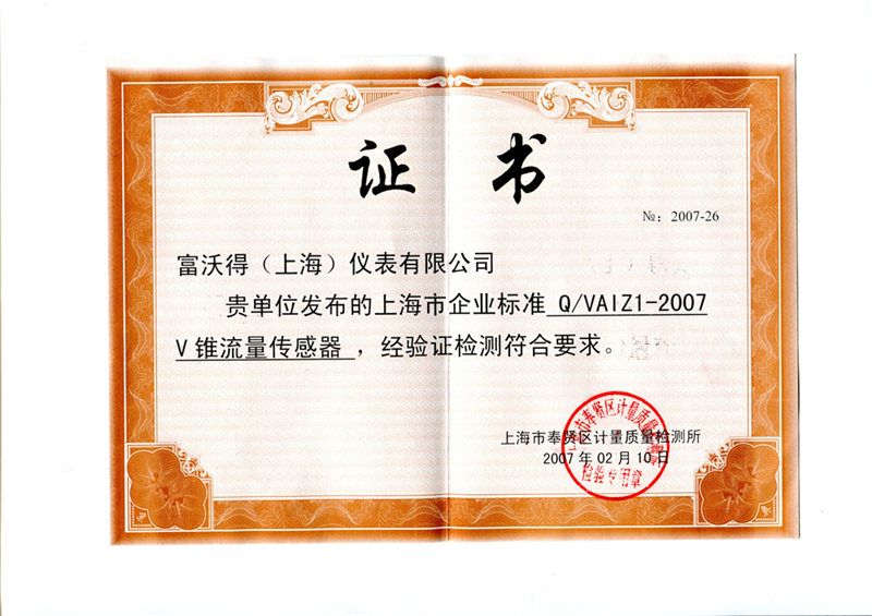 V锥型式批准证书