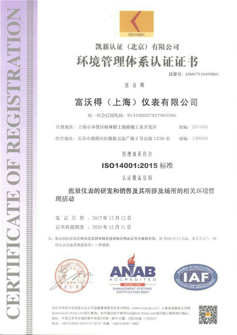 环境管理体系认证书